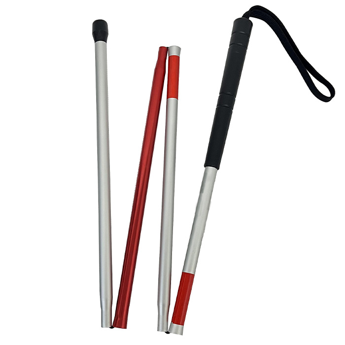 صُنعت هذه العصا البيضاء خفيفة الوزن من سبائك الألومنيوم عالية الجودة والمكونة من أربعة أقسام؛ وهي سهلة الطي والتمديد، مما يجعلها ملائمة للتخزين في الحقيبة.